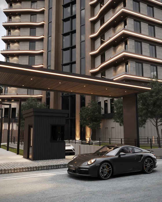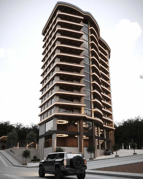 bulunmaktadır. Dairelerimiz tek tip şeklinde olup 4+1, brüt 190 m2, net ise 170 m2 ‘dir. 46 araçlık
